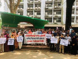 ডিজিটাল নিরাপত্তা আইনে গ্রেপ্তার জগন্নাথ বিশ্ববিদ্যালয়ের (জবি) রাষ্ট্র বিজ্ঞান বিভাগের শিক্ষার্থী কারাবন্দী খাদিজাতুল কুবরার নিঃশর্ত মুক্তির দাবিতে মানববন্ধন ও বিক্ষোভ মিছিল করেছে জগন্নাথ বিশ্ববিদ্যালয়ের সাধারণ