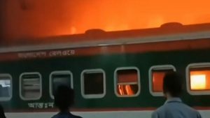 টাঙ্গাইল রেলওয়ে স্টেশনে থেমে থাকা একটি ট্রেনে আগুন দিয়েছে দুর্বৃত্তরা। এতে ট্রেনটির দুটি বগি ক্ষতিগ্রস্ত হয়েছে। স্টেশন কর্তৃপক্ষ জানায়, বুধবার (১৫ নভেম্বর) দিবাগত রাত ৩টায়