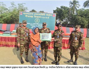 নাটোরের সিংড়ার চৌগ্রাম উচ্চ বিদ্যালয় ও কলেজ মাঠে শীতার্ত মানুষের মাঝে কম্বল বিতরণ করলো সেনাবাহিনীর ১১ পদাতিক ডিভিশন ও ২৬ পদাতিক ব্রিগেডের ১৭ ইস্ট বেঙ্গল