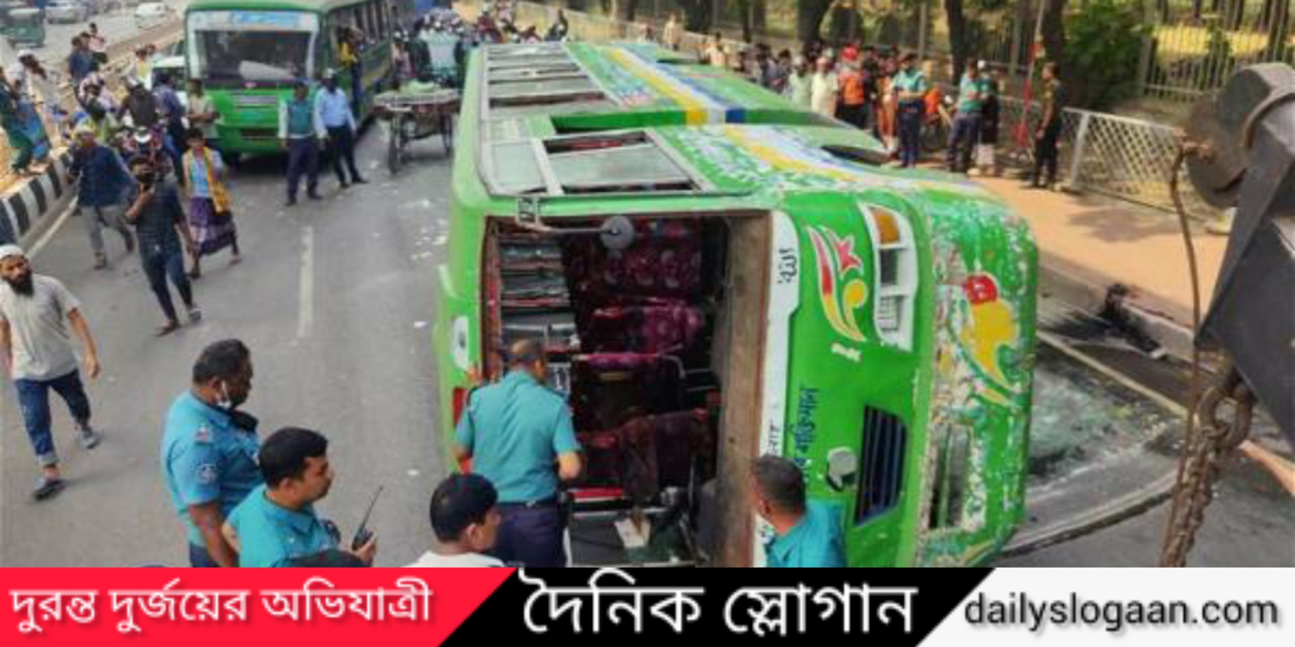 রাজধানীর রাস্তায় উল্টে গেল বাস