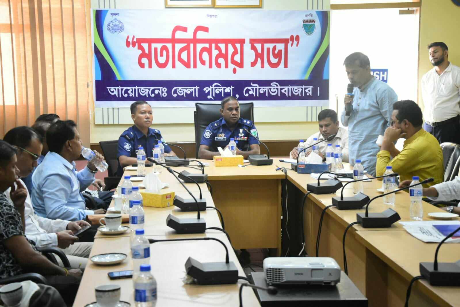 তা নাহলে তৃতীয় পক্ষের কেউ এই সুযোগে বিশৃংখলা সৃষ্টি করতে পারে। মতবিনিময় সভায় আরও উপস্থিত ছিলেন অতিরিক্ত পুলিশ সুপার ডিএসবি মোহসিন, অতিরিক্ত পুলিশ সুপার (সদর সার্কেল) মো. আজমল হোসেন, মৌলভীবাজার জেলার বিভিন্ন থানা ও ইউনিটের ইনচার্জগণ।