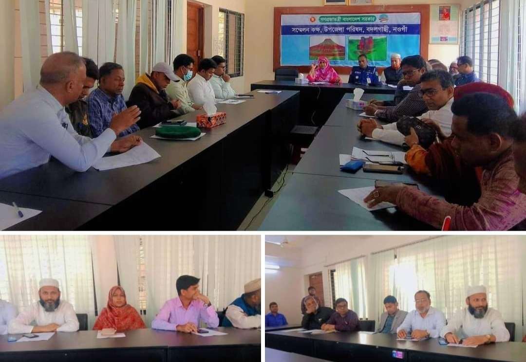 বুধবার বেলা ১১ ঘটিকায় উপজেলা পরিষদ সভাকক্ষে অতিরিক্ত দায়িত্বপ্রাপ্ত উপজেলা নির্বাহী কর্মকর্তা মোসাঃ আতিয়া খাতুনের সভাপতিত্বে এসময় উপস্থিত ছিলেন বদলগাছী থানার অফিসার ইনচার্জ মোঃ মাহবুবুর রহমান, উপজেলা আওয়ামীলীগের সভাপতি মোঃ আবু খালেদ বুলু, উপজেলা মুক্তিযোদ্ধা সংসদের সাবেক কমান্ডার বীরমুক্তিযোদ্ধা জবির উদ্দিন এফ এফ, উপজেলা প্রকল্প বাস্তবায়ন কর্মকর্তা ময়নুল ইসলাম,উপজেলা কৃষি অফিসার কৃষিবিদ সাবাব ফারহান, উপজেলা যুব উন্নয়ন কর্মকর্তা ইবনু সাব্বির আহমেদ, উপজেলা মহিলা বিষয়ক কর্মকর্তা ফারুক আহমেদ, উপজেলা খাদ্য নিয়ন্ত্রক মোছাঃ সাবরিন মোস্তারী,উপজেলা নির্বাচন অফিসার নিত্যানন্দ কুমার পাল, উপজেলা আওয়ামীলীগের সাধারন সম্পাদক মোঃ মিজানুর রহমান কিশোর সহ বিভিন্ন গণ্যমান্য ব্যক্তিবর্গ উপস্থিত ছিলেন।