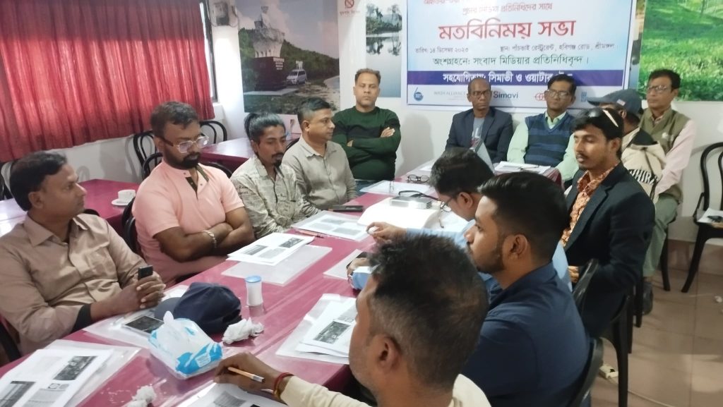 বৃহস্পতিবার (১৪ ডিসেম্বর) সকাল ১১টায় শ্রীমঙ্গল শহরের হবিগঞ্জ রোডস্থ একটি রেস্টুরেন্টের হল রুমে রোমোটিং ওয়াশ ফর হার্ট টু রিচ কমিউনিটিস ইনক্লুডিং টি গার্ডেন ওয়ার্কাস ইন বাংলাদেশ প্রজেক্ট এনজিও সিমাভী ও ওয়াটারএইড এর সহযোগিতায় আয়োজিত মতবিনিময় সভায় সভাপতিত্ব করেন শ্রীমঙ্গল প্রেসক্লাব সভাপতি বিশ্বজ্যোতি চৌধুরী।