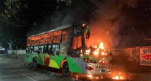 পুরান ঢাকায় সাভার পরিবহনে আগুন