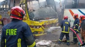 একসাথে তিনটি বাসে আগুন দিয়েছে দুর্বৃত্তরা। রাজধানীর খিলগাঁওয়ের মানিকনগর চৌরাস্তায় একুশে এক্সপ্রেসের তিনটি বাসে অগ্নিসংযোগের ঘটনা ঘটেছে। বুধবার (৬ ডিসেম্বর) বিকেল ৪টা ৪৮মিনিটে এই অগ্নিসংযোগের