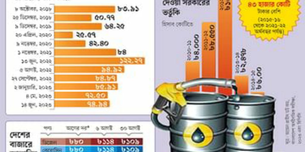 ২০২১ সালের নভেম্বরে দীর্ঘদিন পর জ্বালানি তেলের দাম বাড়িয়ে থাকে সরকার। তখন আন্তর্জাতিক বাজারে অপরিশোধিত জ্বালানি তেলের অন্যতম মানদণ্ড ব্রেন্ট ক্রুডের ব্যারেলপ্রতি দাম ছিল ৮৪ মার্কিন ডলার।