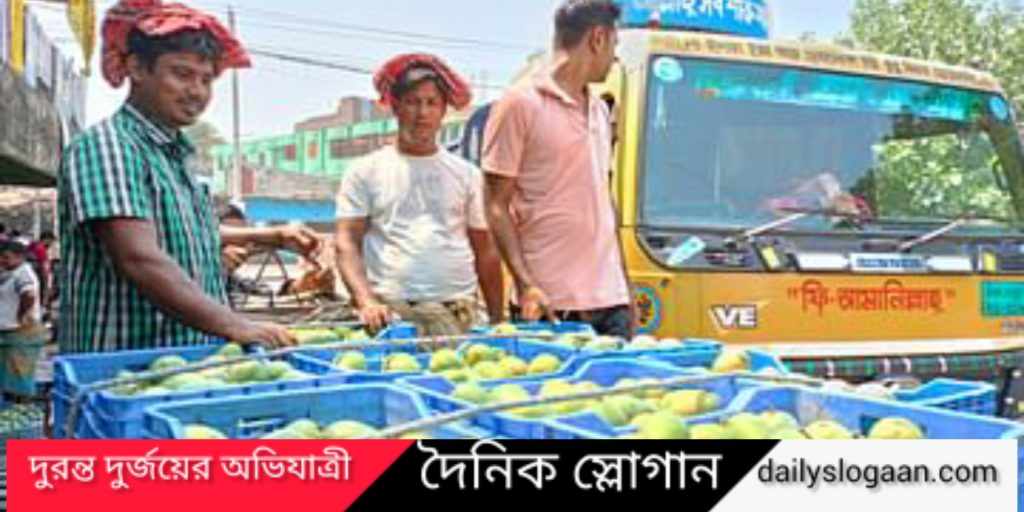 বানেশ্বরের ব্যবসায়ী ফারুক জোয়ারদার একটি ভটভটি নিয়ে গোপালভোগ আম নিয়ে বেলা দেড়টার দিকে বাজারে ঢুকলেন। কাঠফাটা রোদের মধ্যে তিনি ভটভটির ওপর বসে থাকলেন। গাড়ির ওপর থেকেই তিনি ক্রেতাদের সঙ্গে কথা বলছেন। এই সময় অনলাইন আম সরবরাহকারীদের দেখা গেল। ফারুক ভিডিও কলে গোপালভোগ ক্রেতাদের দেখাচ্ছেন। তিনি বললেন, প্রথম দিনে তিনি ১২ মণ পেড়েছেন। দাম হাঁকছেন ২ হাজার থেকে ২ হাজার ২০০ টাকা মণ।