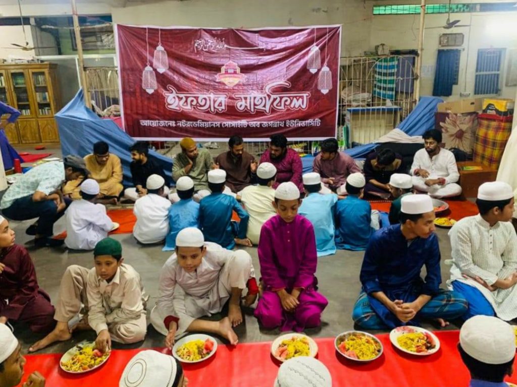 আসুন এই রমজানে এক টাকায় হাসি ছড়ায়’ কর্মসূচিকে সম্মুখে রেখে মাদ্রাসার শিক্ষার্থীদের সাথে ইফতারের আনন্দ ভাগাভাগি করে নিয়েছে নটরডেমিয়ানস সোসাইটি অব জগন্নাথ ইউনিভার্সিটির সদস্যরা। শুক্রবার বিশ্ববিদ্যালয় সংলগ্ন একটি মাদ্রসার প্রায় ২৮০ জন শিক্ষার্থী ও সংশ্লিষ্টদের সাথে নিয়ে এই আয়োজন করা হয়েছে।