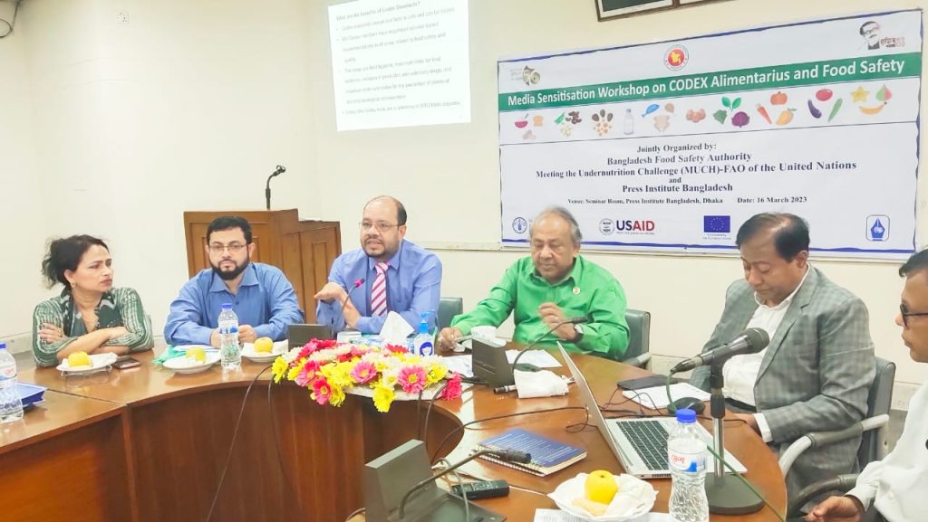 কর্মশালা তথ্য উপস্থাপন করেন -অপুষ্টি চ্যালেঞ্জ (MUCH) প্রকল্পের জাতীয় নিরাপদ খাদ্য বিশেষজ্ঞ অধ্যাপক বোরন উদ্দিন। তিনি বলেন, কোডেক্স অ্যালিমেন্টারিউস বা “খাদ্য কোড” আন্তর্জাতিকভাবে গৃহীত খাদ্য মানগুলির একটি নির্দেশনা। এই মানগুলো ভোক্তাদের সুস্বাস্থ্য রক্ষা করা এবং খাদ্য বাণিজ্যে উপযুক্ত মান নিশ্চিত করে।