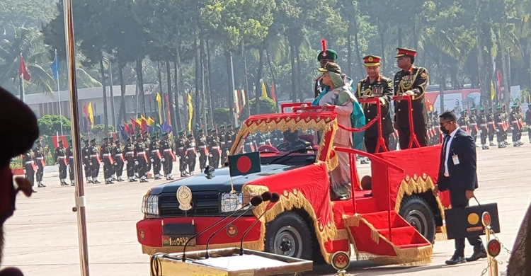 রাষ্ট্রপতি কুচকাওয়াজ পরিদর্শনে ভাটিয়ারীতে শেখ হাসিনা