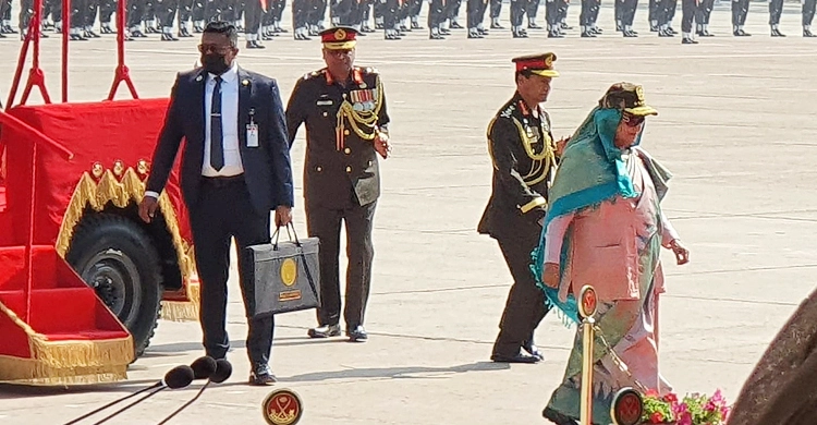 রাষ্ট্রপতি কুচকাওয়াজ পরিদর্শনে ভাটিয়ারীতে শেখ হাসিনা