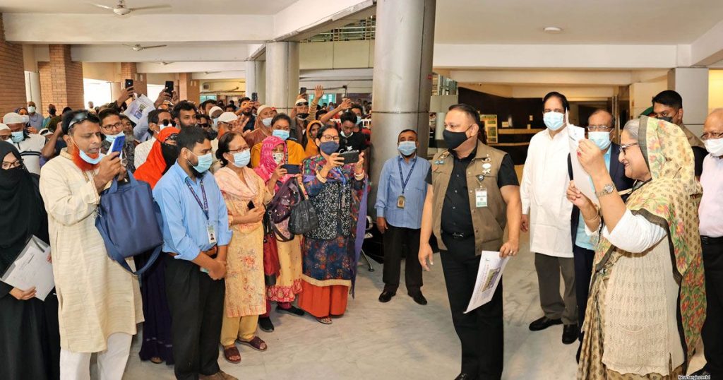 প্রধানমন্ত্রী চোখ দেখাতে গেলে সেখানে তাকে অভ্যর্থনা জানান হাসপাতালের পরিচালক অধ্যাপক ডা. গোলাম মোস্তফা। প্রধানমন্ত্রী হাসপাতাল ছেড়ে বেরোনোর সময় বহির্বিভাগের নার্স, রোগী ও তাদের স্বজনদের সঙ্গে কুশল বিনিময় করেন। সরকারপ্রধান শেখ হাসিনা এসময় চিকিৎসার বিষয়ে খোঁজ খবর নেন এবং তাদের সঙ্গে ছবি তোলেন।