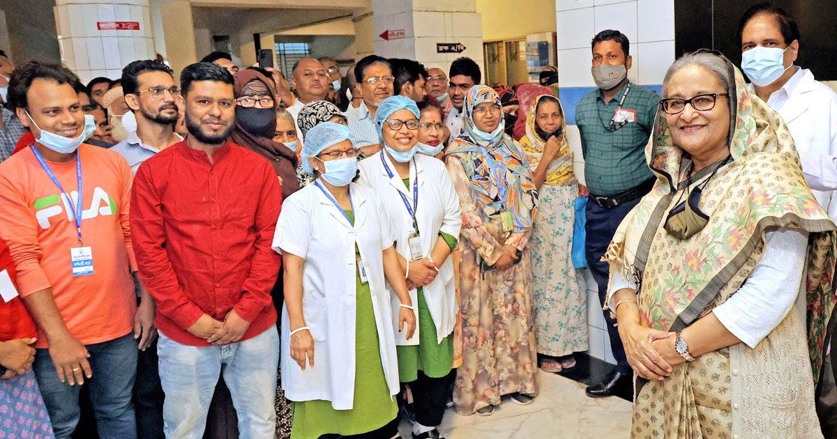 প্রধানমন্ত্রী চোখ দেখাতে গেলে সেখানে তাকে অভ্যর্থনা জানান হাসপাতালের পরিচালক অধ্যাপক ডা. গোলাম মোস্তফা। প্রধানমন্ত্রী হাসপাতাল ছেড়ে বেরোনোর সময় বহির্বিভাগের নার্স, রোগী ও তাদের স্বজনদের সঙ্গে কুশল বিনিময় করেন। সরকারপ্রধান শেখ হাসিনা এসময় চিকিৎসার বিষয়ে খোঁজ খবর নেন এবং তাদের সঙ্গে ছবি তোলেন।