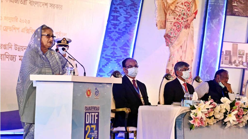 আজ রোববার (০১ জানুয়ারি) পূর্বাচলের বঙ্গবন্ধু বাংলাদেশ-চায়না ফ্রেন্ডশিপ এক্সিবিশন সেন্টারে (বিবিসিএফইসি) আন্তর্জাতিক বাণিজ্যমেলা-২০২৩ উদ্বোধনী অনুষ্ঠানে তিনি এসব কথা বলেন।