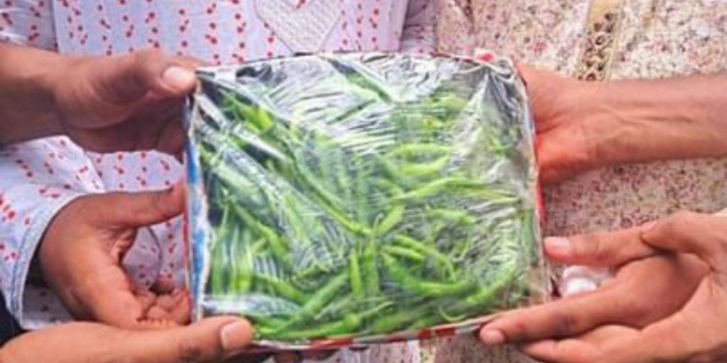 বিয়ের অনুষ্ঠানের কাঁচা মরিচ উপহার দিয়ে আলোচনায় এসেছেন বিয়েতে আসা অতিথিরা। রোববার দুপুরে ঘটনাটি ঘটেছে কিশোরগঞ্জের পাকুন্দিয়া উপজেলার হোসেন্দীতে।
