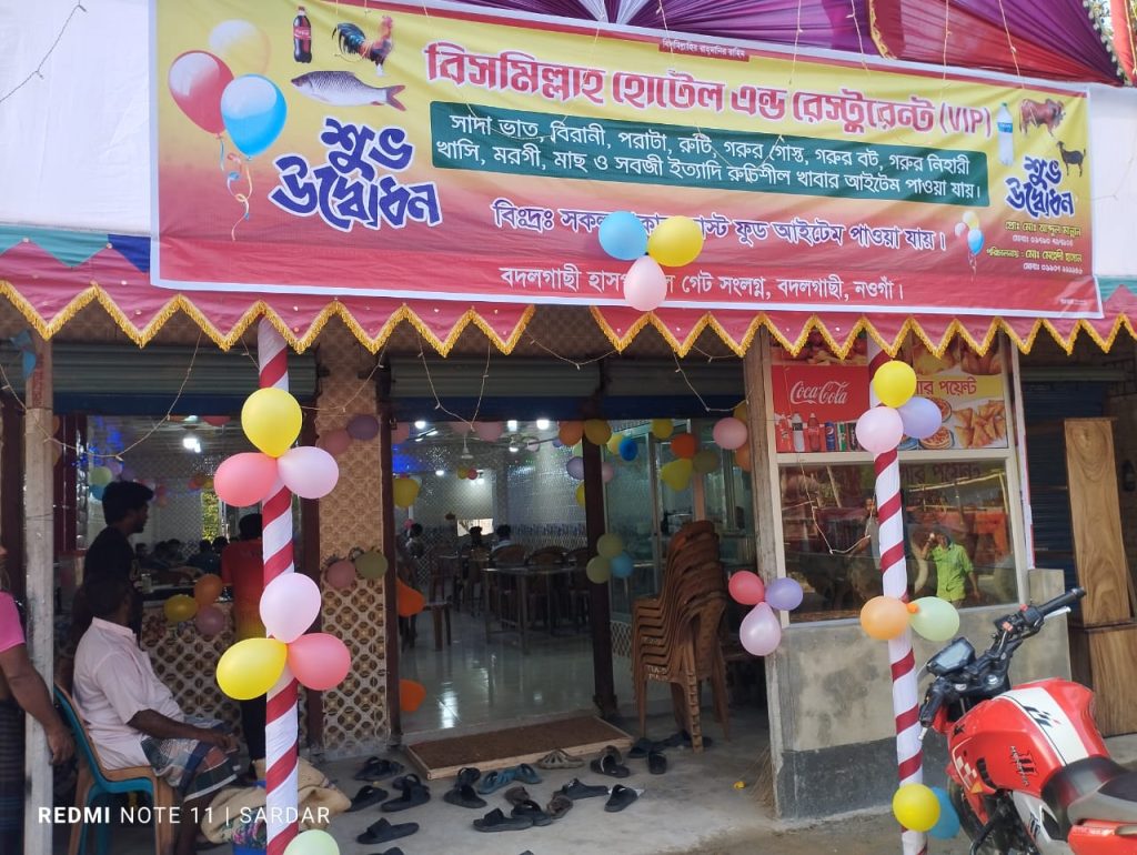 নওগাঁর বদলগাছী তে রুচিশীল খাবারের নির্ভরযোগ্য বিসমিল্লাহ হোটেল এন্ড রেস্টুরেন্ট (Vip) উদ্বোধন করা হয়েছে।