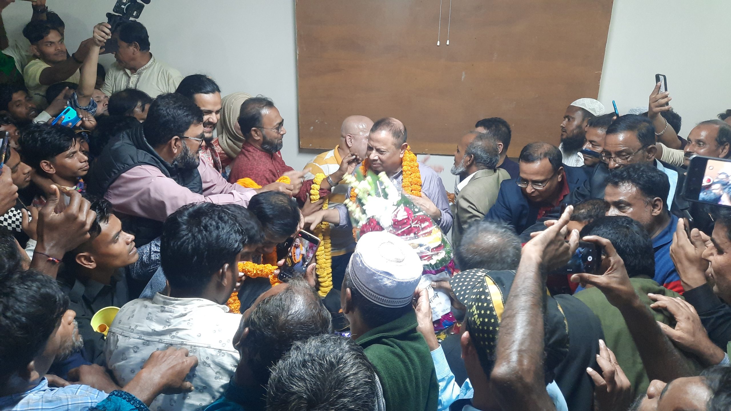 দ্বাদশ জাতীয় সংসদ নির্বাচনে ব্রাহ্মণবাড়িয়া-১(নাসিরনগর)আসনে স্বতন্ত্র প্রার্থী বিএনপির চেয়ারপার্সনের বহিস্কৃত উপদেষ্টা আলহাজ্ব সৈয়দ একে একরামুজ্জামান সুখনকে ফুলেল শুভেচ্ছা ও অভ্যর্থনা জানিয়েছেন এলাকার বিভিন্ন দলীয় নেতাকর্মীরাসহ এলাকার মানুষ। এসময় ফুলেল মালার ভালবাসায় সিক্ত হন তিনি।