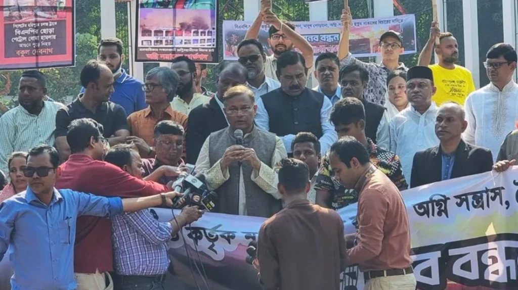 শনিবার দুপুরে রাজধানীতে কেন্দ্রীয় শহীদ মিনারের পাদদেশে ‘অগ্নি-সন্ত্রাসের আর্তনাদ’ সংগঠন আয়োজিত ‘বিএনপি-জামাত কর্তৃক মানবাধিকার লঙ্ঘন, মানুষ পোড়ানো, অগ্নিসন্ত্রাসী ও হুকুমদাতাদের বিচারের দাবিতে মানববন্ধন’ শীর্ষক পোড়া মানুষের আহাজারিপূর্ণ সমাবেশে প্রধান অতিথির বক্তৃতায় তিনি এ কথা বলেন।