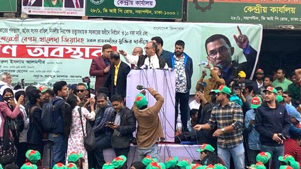 আজ বুধবার (১১ জানুয়ারি ) দুপুরে নয়া পল্টনে বিএনপির কেন্দ্রীয় কার্যালয়ের সামনে গণঅবস্থান কর্মসূচিতে একথা বলেন তিনি। সরকারের পদত্যাগ, সংসদ বাতিল, নির্দলীয় নিরপেক্ষ তত্ত্বাবধায়ক সরকারের অধীনে নির্বাচন ও ১০ দফা দাবিতে গণঅবস্থান কর্মসূচির আয়োজন করেছে বিএনপি।