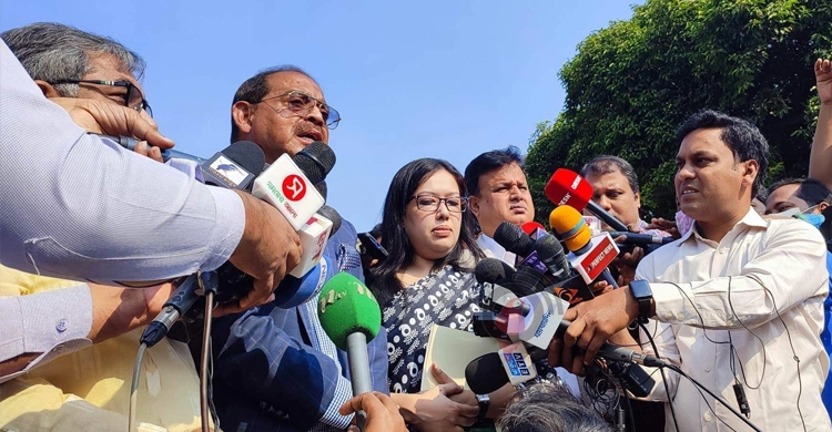 পদত্যাগপত্র জমা দিয়ে জাতীয় সংসদ ভবন থেকে বেরিয়ে সাংবাদিকদের সঙ্গে কথা বলেন বিএনপির এমপিরা।