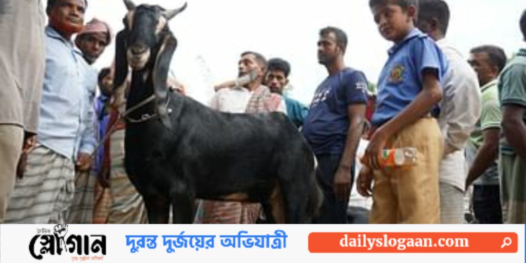 ভারতের তোতাপুরী জাতের একটি খাসি। কোরবানি উপলক্ষে বিক্রির জন্য মালিক খাসিটির দাম হাঁকাচ্ছেন ৮০ হাজার টাকা। উৎসুক লোকজন খাসিটি দেখতে হাটে ভিড় করেছেন। গতকাল বুধবার জয়পুরহাটের আক্কেলপুরে কলেজহাটের পশুর হাটে খাসিটি আনা হয়। এটিই হাটের মধ্যে সবচেয়ে বড় খাসি।