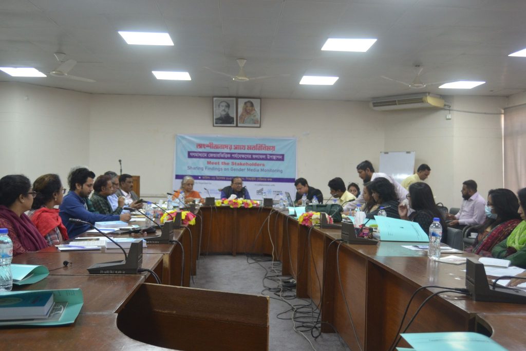 আলোচনায় ঢাকা বিশ্ববিদ্যালয়ের গণযোগাযোগ ও সাংবাদিকতা বিভাগের অধ্যাপক ড. গীতি আরা নাসরিন বলেন, বৈশ্বিক গণমাধ্যম পর্যবেক্ষণ বা গেøাবাল মিডিয়া মনিটরিং ১৯৯৫ সালে শুরু হলেও বাংলাদেশে এর যাত্রা শুরু হয় ২০০৫ সালে। যদিও বাংলাদেশে গণমাধ্যম পর্যবেক্ষণ খুব একটা ফলপ্রসূ নয়,তারপরও কিছু নীতিমালার বিষয় তুলে ধরেন। তিনি বলেন,সংবাদ উপস্থাপনে পাঠক,দর্শক বা শ্রোতাকে যেমন জেন্ডার সহিংসতায় উসকে দিতে পারে, তেমনি নতুন কিছু ইতিবাচক ধারণাও সৃষ্টি করতে পারে। গীতি আরা নাসরিন বলেন, গণমাধ্যমে জেন্ডার মূলত নারীর অংশগ্রহণ ও নারীকে চিহ্নিতকরণ এই দুইটি ভাবে উপস্থাপন করা হয়। তিনি নারীর সংখ্যা বা অংশগ্রহণ দিয়ে বিচার না করে সামগ্রিকভাবে নারীর অবস্থান কেমন সেটা বিচেচনার উপর জোর দেন। এছাড়া তিনি দর্শক,শ্রোতা ও পাঠকের দৃষ্টিভঙ্গি পরিবর্তনের জন্য বস্তুনিষ্ঠ প্রতিবেদনের উপর গুরুত্বারোপ করেন। ড. গীতি আরা নাসরিন আরো বলেন, বর্তমান ক্লিক বেজ নিউজের সময় নারীপাতা বা নারীমঞ্চ নয় বরং নারীর প্রতি সমাজের ইতিবাচক দৃষ্টিভঙ্গি পরিবর্তনে সংবাদে শব্দ চয়ন,ছবি ও ভিডিও কিভাবে উপস্থাপন করা হবে সেটা অত্যন্ত গুরুত্বপূর্ণ।