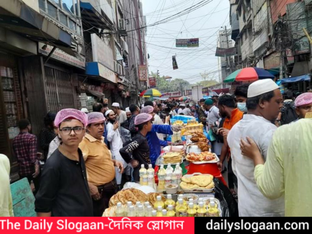 (শুক্রবার) রাজধানী সদরঘাট এলাকায় বাংলাবাজার, শ্যামবাজার, ইসলামপুর, পাটুয়াতলী, বাদামতলী, আহসান মঞ্জিলের আশেপাশে ঘুরে ছোট – বড় অসংখ্য ইফতারের দোকান দেখা যায়। দোকানগুলোতে বিক্রেতারা ছোলা, আলুর চপ, বেগুনি, পিয়াজু, জিলাপি, বুন্দিয়া, ঘুগনি, খেজুর, পাকোড়া, মুড়ি, চিড়া-মুড়ি, দই চিড়া, নুডলস, চিকেন ফ্রাই, চিকেন ঝালফ্রাই, চিকেন তন্দুরি, চিকেন টিক্কা, চিকেন কাবাব, চিকেন বল, চিকেন পরোটা, চিকেন গ্রিল, শাহী হালিম, বিরিয়ানি, মাঠাই, মৌসুমি ফলসহ বিভিন্ন ইফতারের পসরা সাজিয়ে বসেছেন বিক্রেতারা।