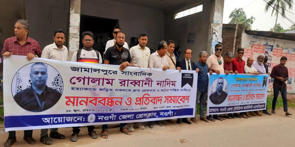 সাংবাদিক নাদিম হত্যাকান্ডে শাস্তির দাবিতে নওগাঁয় মানববন্ধন