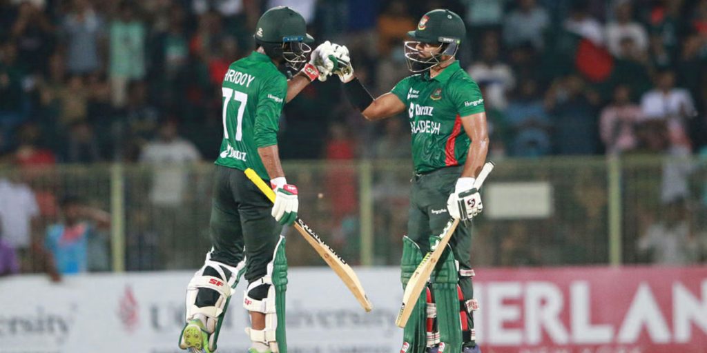 মিরাজের পর নাসুম আহমেদ ও তাসকিন আহমেদ উভয়ই গোল্ডেন ডাক মেরে প্যাভিলিয়নের পথ ধরেন। সেই সময় ক্রিজে আসেন পেসার শরিফুল ইসলাম। তবে যুব বিশ্বকাপজয়ী এই পেসার আর ভুল করলেন না। অফ সাইডের ফাঁক খুঁজে নিয়ে সবুজ ঘাসের বুক চিরে বলকে পাঠিয়ে দেন সীমানায়। তাতেই নিশ্চিত হয়ে যায় বাংলাদেশের জয়। তবে তার আগে ম্যাচটিতে টাইগারদের টিকিয়ে রেখেছিলেন ৪৭ রান করা তাওহীদ হৃদয়। ৩৩ রান করা শামীম পাটোয়ারী তাকে যোগ্য সাথী ছিলেন।