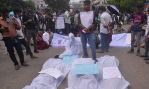 শেখ হাসিনার নামে মিথ্যা মামলা প্রত্যাহারের দাবীতে ছাত্রলীগের বিক্ষোভ মিছিল