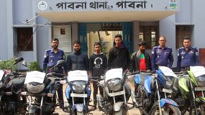 পাবনায় পৃথক অভিযান চালিয়ে আন্ত:জেলা মোটরসাইকেল চোর চক্রের ৯ সদস্যকে গ্রেপ্তার করেছে পুলিশ। এ সময় তাদের কাছ থেকে ৯টি চোরাই মোটরসাইকেল জব্দ করা হয়েছে। শুক্রবার