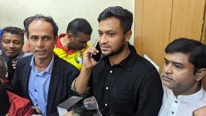 টাইগার অলরাউন্ডার সাকিব আল হাসানের মাগুরা শহরের কেশব মোড়স্থ বাড়ির সামনে পুলিশি পাহারা দিতে দেখা গেছে। শনিবার (২৫ নভেম্বর) সন্ধ্যার পর থেকেই এমন দৃশ্য দেখা যায়।